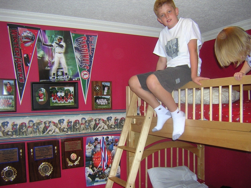 But the trophy wall is covered from top to bottom. Bowling awards, baseball, football and soccer too!
